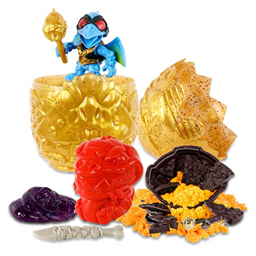 Rompi l'uovo e all'interno troverai vari giocattoli e accessori super divertenti, come un mostro di plastica, una roccia e uno strumento di scavo per scoprire il tesoro d'oro e il dinosauro da collezione