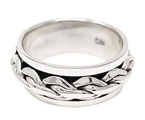 Realizzato in argento Sterling 925 massiccio, caratterizzato da un design unico a doppia treccia con centro rotante per aiutare a ridurre lo stress