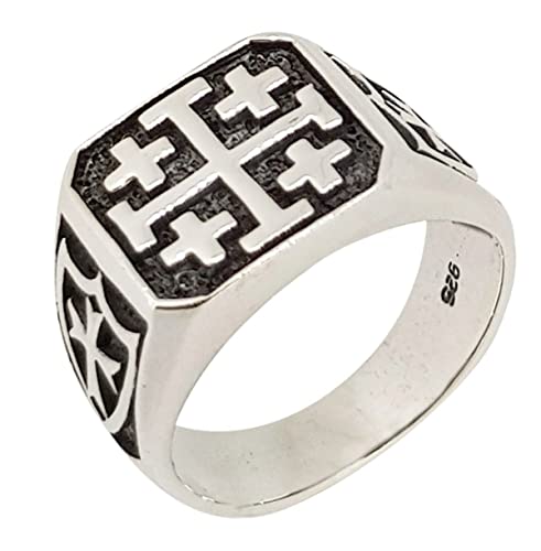 TreasureBay Anello classico in argento Sterling 925 con scudo vichingo e croce da uomo, Argento Sterling