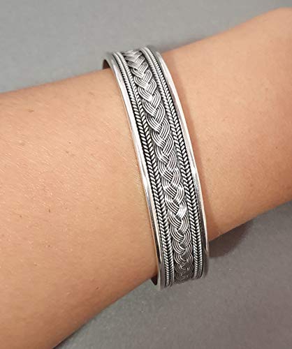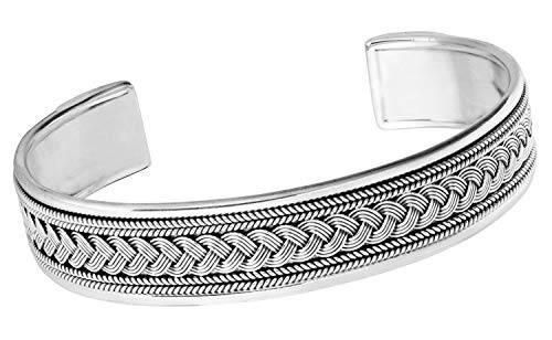 Bracciale rigido aperto, realizzato a mano in argento sterling 925 di alta qualità