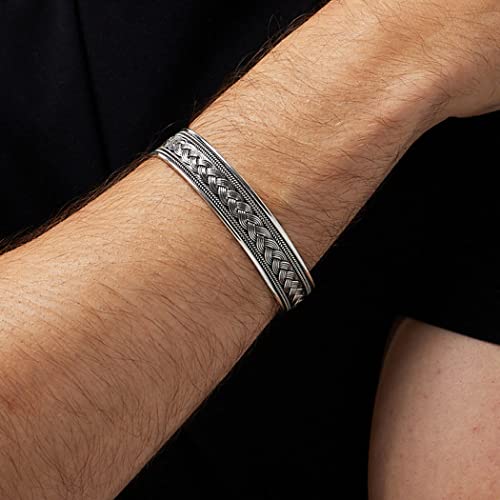 Realizzato in solido argento Sterling 925 con dettagli intrecciati rifiniti in uno stile polsino aperto