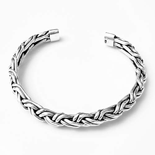 Fatto a mano in argento sterling 925 con dettagli intrecciati, rifinito in stile polsino aperto per indossarlo facilmente.