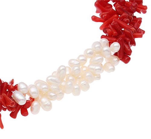 TreasureBay Collana girocollo con corallo rosso e perle d'acqua dolce bianche, stile moderno, in confezione regalo