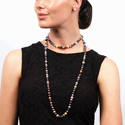 TreasureBay Elegante collana di perle d'acqua dolce da 8-9 mm, multicolore 120 cm, collana di perle da donna