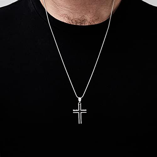 TreasureBay Incredibile ciondolo a forma di croce in argento sterling con catena da uomo, Argento