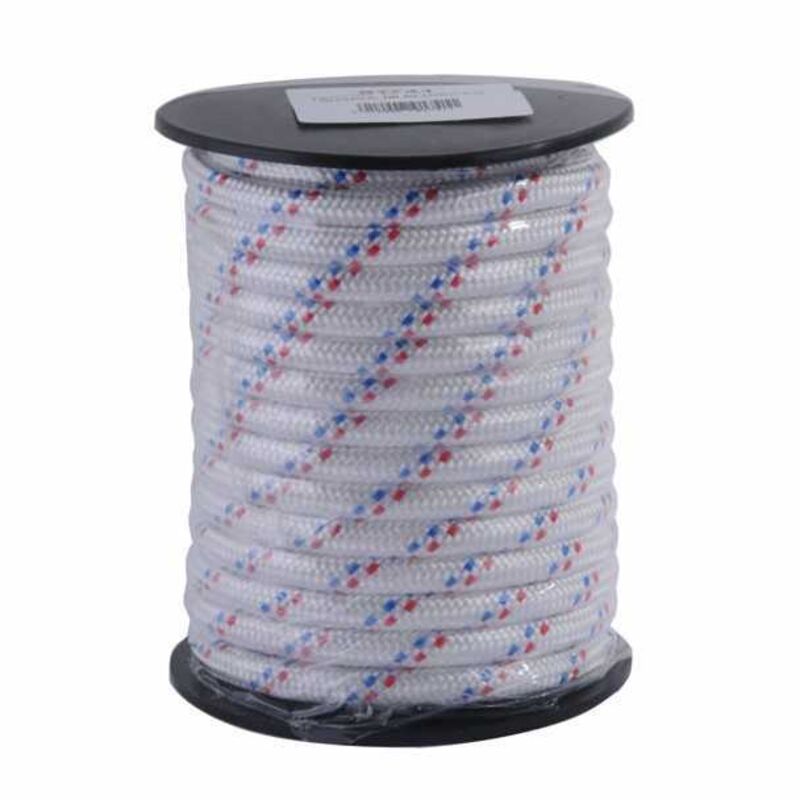 Treccia in polipropilene Colore bianco fili segnale blu/rossi Trecciata a 16 fusi con anima interna Tipologia - Corde trecciate e accessori f Marca - Machieraldo Modello - 400012 Caratteristiche - mm 12 m 10