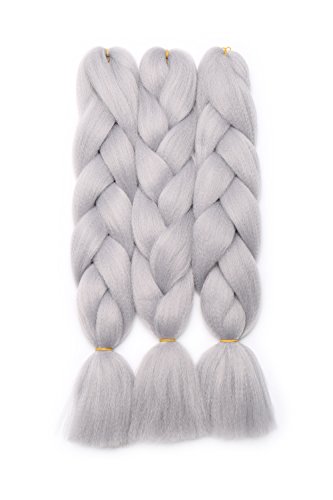 SEGO 60cm 24" Treccia Capelli Extension Fibre Lunga Treccine Extension 100g - Grigio Argento