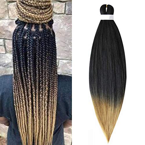 Treccine Capelli Extension Pre Stretched Braiding Hair Pre Allungato Stirato Yaki Professionale Africane Capelli Sintetici Lunghi Sintetici Afro Ombre Crochet 1 Ciocche 65cm Nero&Biondo scuro