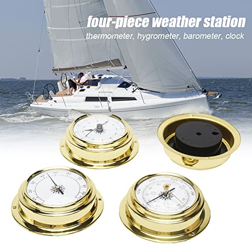 Tree2018 Set di 4 stazioni meteorologiche mini 98 mm accessori marini igrometro a parete strumento barca portatile accurato barometro orologio