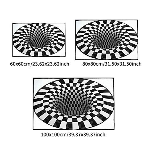 Tree2018 Tappeto rotondo con illusione 3D, a scacchi, con illusioni ottiche, antiscivolo, tappetino nero bianco, in tessuto non tessuto, per camera da letto, soggiorno, ufficio