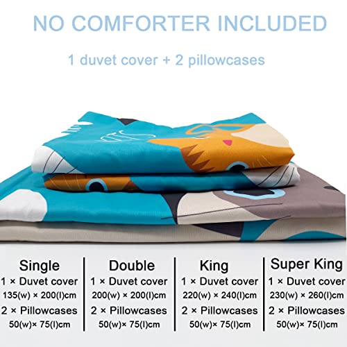 Treer Set di Biancheria da Letto di Matrimoniale 3 Pezzi 3D Gatto Stampa Digitale, Set Copripiumino in Microfibra con Federa e Copripiumino Chiusura Cerniera (Turchese,135x210cm)