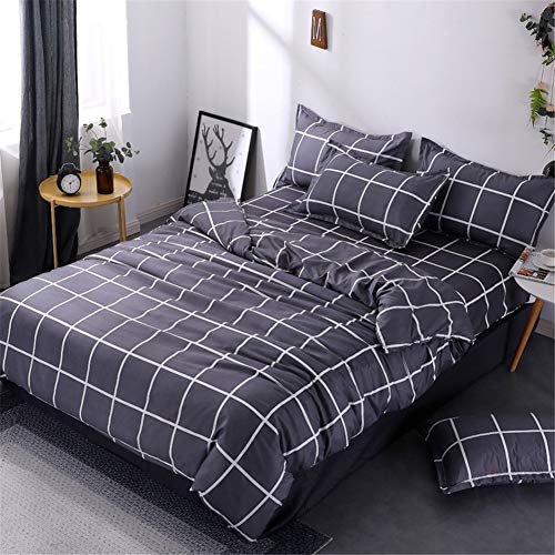 Treer Set Copripiumino Matrimoniale Geometrico, 4 Pezzi Microfibra Poliestere Cerniera Ipoallergenico 1 Biancheria da Letto e 2 Federe per Letto Singolo King Size (200 * 230cm,Reticolo)