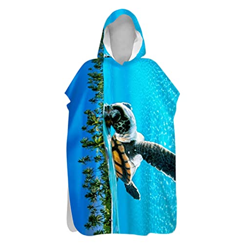 Treer Microfibra Poncho Surf con Cappuccio Cambiare Accappatoio per Uomini & Donne, Asciugatura Rapida Poncho Compatto Super Leggero per Il Nuoto, Le Immersioni (Tartaruga oceanica 1,60x110cm)