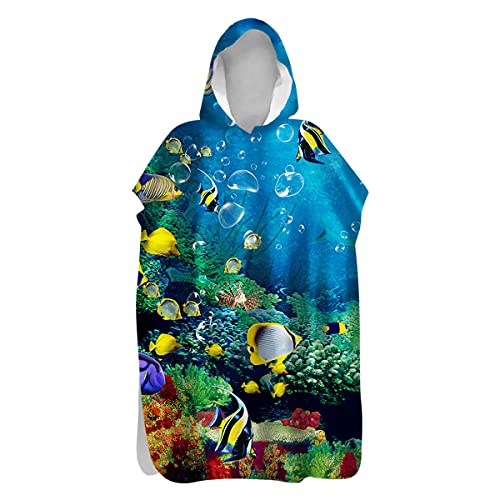 Treer Microfibra Poncho Surf con Cappuccio Cambiare Accappatoio per Uomini & Donne, Asciugatura Rapida Poncho Compatto Super Leggero per Il Nuoto, Le Immersioni (Pesce tropicale,60x110cm)