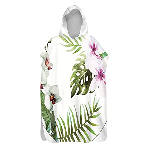 Treer Poncho Surf con Cappuccio, Microfibra Asciugatura Rapida Poncho Cambiare Spogliatoio Accappatoio per Adulto Uomini Donne Bambino Ideale per Il Nuoto, Le Immersioni (75x145cm,Monstera)
