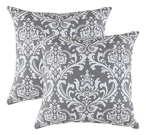 TreeWool federe copricuscino decorative (40 x 40 cm, Grafite/Grigio Scuro) con motivo Damask in cotone - Confezione da 2