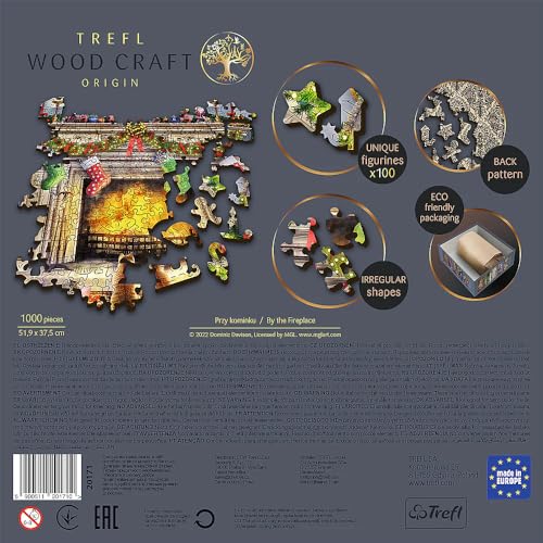 Trefl-1000 Pezzi, Wood Craft, Forme Irregolari, 100 Figure Natalizie, Moderno di qualità, DIY, Divertimento per Bambini dai 12 Anni in su Puzzle, Colore Vicino al Caminetto, 20171