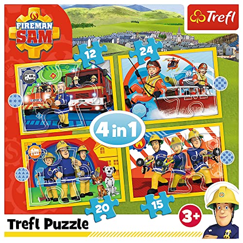Trefl 12 a 24 Elementi, 4 Set, Il Servizievole Sam il Pompiere, per Bambini da 3 Anni Puzzle, Colore, Hilfreicher Feuerwehrmann Fireman, 34373