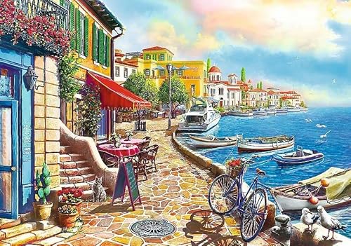Trefl 1000 Elementi, vista del viale, sole, pub, bicicletta, edifici, te, intrattenimento creativo, regalo, divertimento, classici Puzzle, Colore soleggiato, 10527