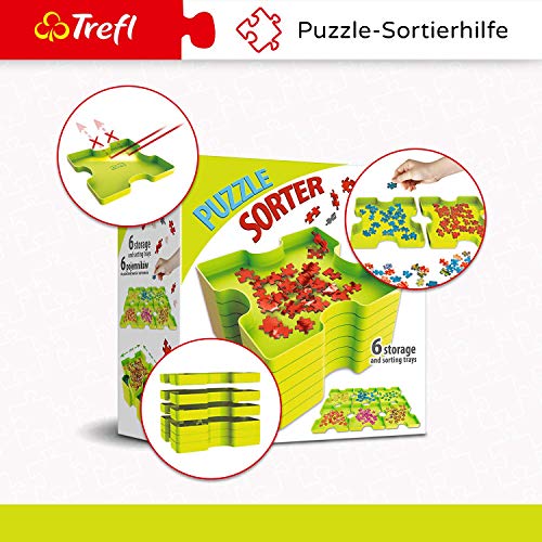 Con l'ausilio per ordinare facilmente i pezzi di puzzle. La scatola abbinata permette di conservare e trasportare in modo sicuro i contenitori del puzzle.