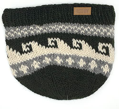 Trend Berretto in lana vergine Nepal fatto a mano, taglia unica, verde scuro, beige, grigio