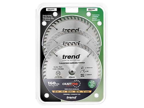 TREND Confezione tripla di lame circolari CraftPro TCT, diametro 160 mm x 48 denti x foro 20 mm, punta in carburo di tungsteno, CSB/160/3PK, Confezione da 3