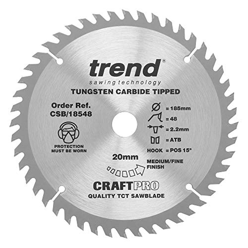 TREND Lama per sega CraftPro Trimming Crosscut TCT, 184 mm x 48 denti x 20 mm alesaggio, punta in carburo di tungsteno, CSB/18548