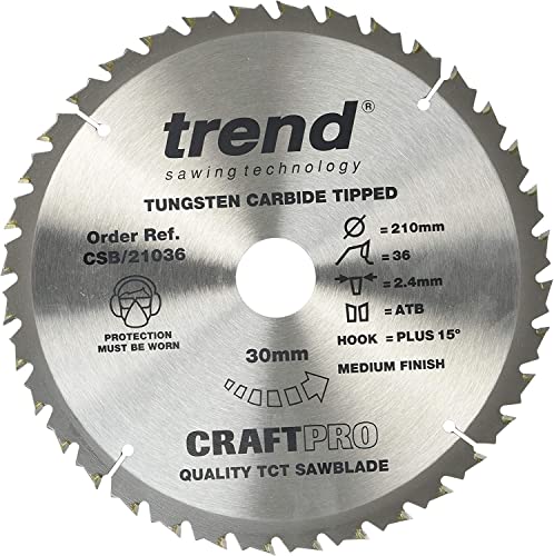 Trend CSB/21036 Craft Pro - Lama per sega circolare TCT per uso generico, punta in carburo di tungsteno, 210 mm x 36 denti x 30 fori