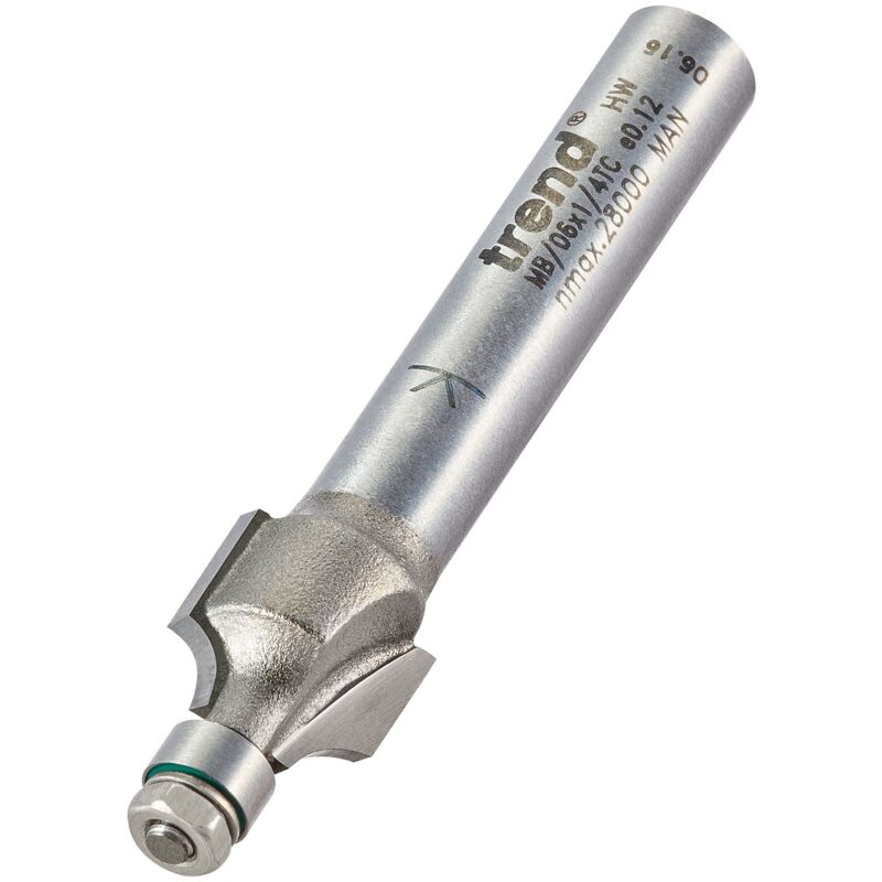Parte della gamma Trend Professional punte per fresa con punta in carburo di tungsteno. Mini guidato rotondo su raggio 2,4 mm x 9,5 mm. Da 60 anni Trend machinery & Cutting Tools produce fresa e accessori di alta qualità per applicazioni professionali del legno.