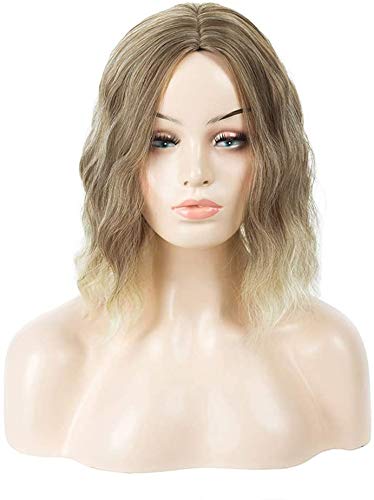 Trend Bob - Parrucca corta ondulata, capelli biondi castani, con parte centrale, parrucca sintetica resistente al calore