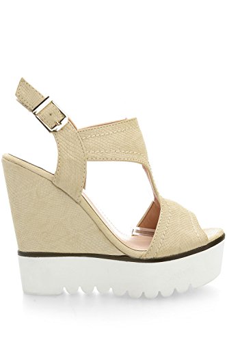 Alx Trend Scarpe da Donna Sandali Pitonati con Zeppa Selly - Beige-40