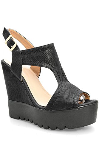 Alx Trend Scarpe da Donna Sandali pitonati con Zeppa Selly - Nero-40