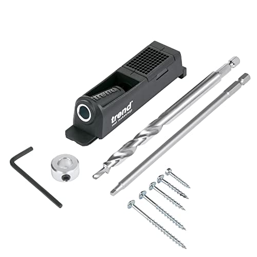 MULTIFUNZIONALE: Lo strumento Trend Single Pocket Hole Jig con trapano HSS e anello di regolazione della profondità è perfetto per fissaggi singoli o multipli in legno largo o stretto.