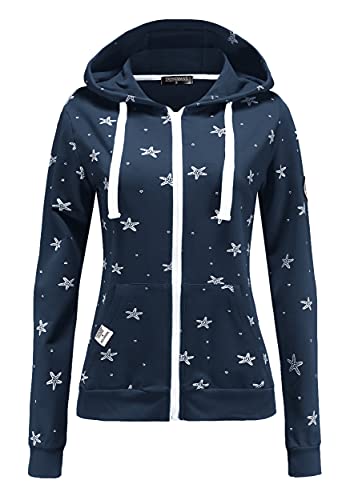 TrendiMax Felpa con Cappuccio Zip Donna Autunno Inverno Pullover Casual Hoody Hoodie Soprtivo Blu M
