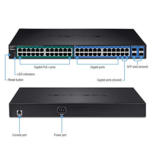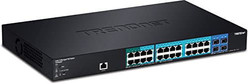 TRENDnet TL2-PG284 - Switch Gigabit PoE+ gestito Layer 2 a 28 porte, 20 porte Gigabit, 4 porte Gigabit PoE+, 4 slot SFP divisi, capacità di commutazione 56 Gbps