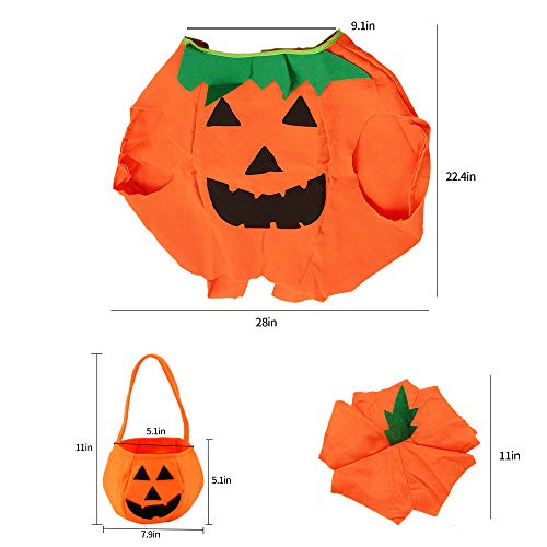 Homo Trends - Set 3 pezzi, costume da zucca da 57 cm di lunghezza, per Halloween, da bambini (vestito da zucca + cappello + borsetta)