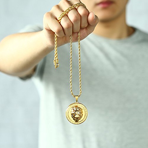 Trendsmax Gioielli delle donne degli uomini di modo della testa del leone placcato oro intagliato rotonda cavo pendente Indietro 60.96cm