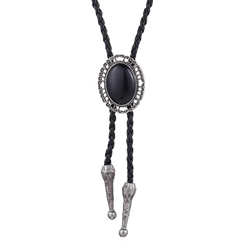 Trendsmax LAT? recorte Oval con Diamantes de imitaci? de Cuero Negro Bolo Bolo Tie Collar Danza Rodeo Western Cowboy