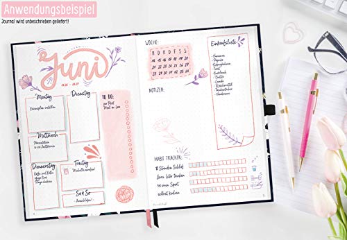 Carta di qualità sostenibile: la carta da 120 g/m² proviene da fonti responsabili ed è del 50% più spessa rispetto alla carta tradizionale, quindi risulta poco trasparente. Inoltre, il nostro BuJo è stampato in modo ecologico.