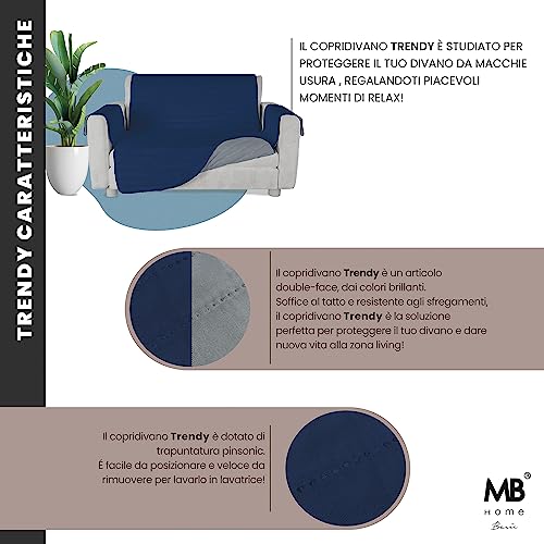 Trendy Copri Divano Trapuntato, Tela, Blu Scuro/Grigio Chiaro, 1 POSTO