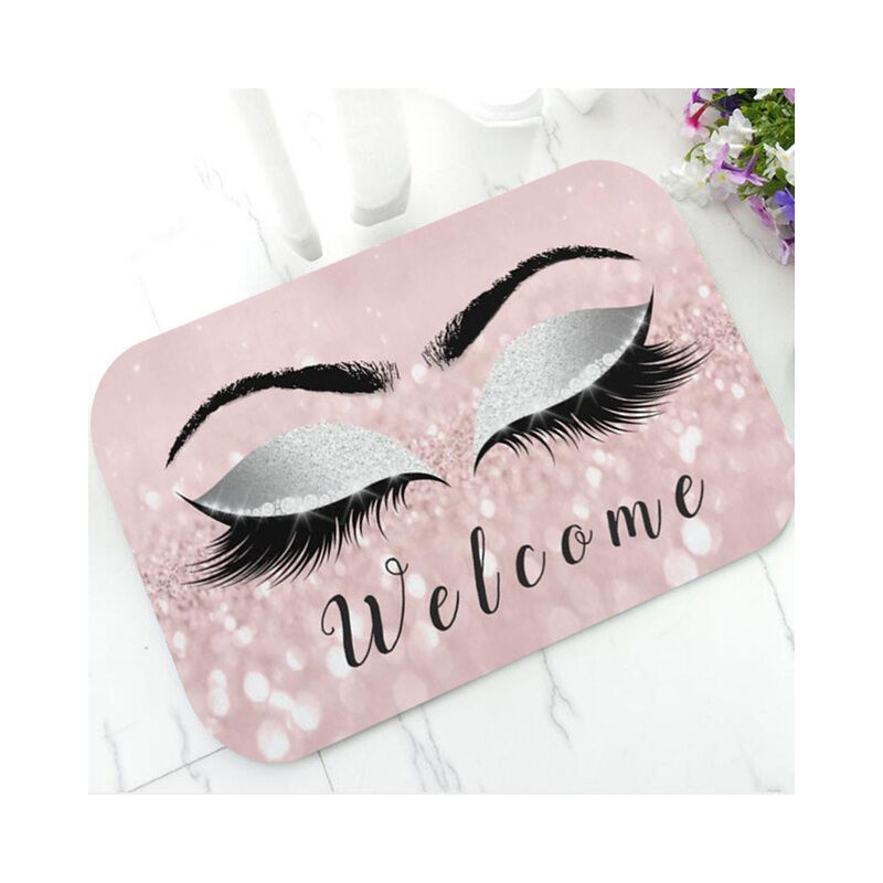 Trendy Rose Gold Glitter ciglia ciglia benvenuto tappetino trucco scintillante tappetino in gomma tappeto tappeto Chic Home Beauty Studio Decor,A,40 cm x 60 cm