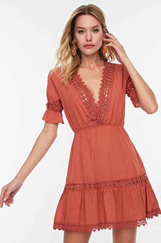 Trendyol Abito da Spiaggia in Pizzo a Righe Dress, Marrone, 40 Donna