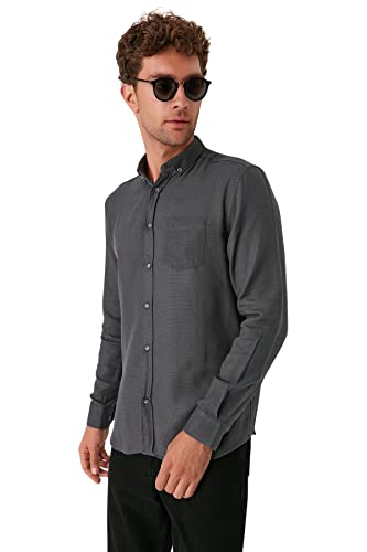 Trendyol Anthracite-Camicia da Uomo Slim Fit con Bottoni Maglia, Grigio