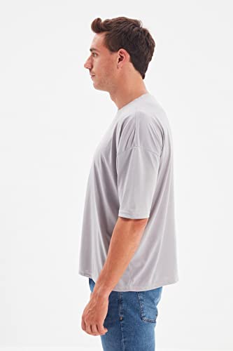 Trendyol Gray Basic-Maglietta a Maniche Corte da Uomo, Modello Bicycle Collar Oversize T-Shirt, Grigio, S