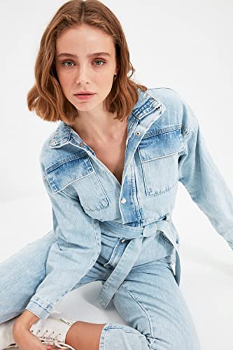 Trendyol Blue Belted Beli Rubber Denim Jumpsuit Salopette, 36 da Donna