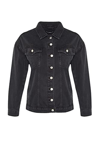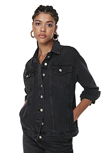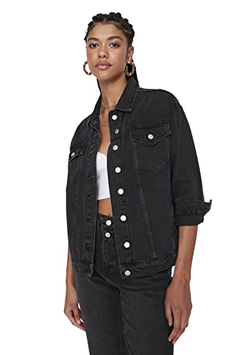 Trendyol Black Denim Jacket Giacca di Jeans Basic Nera, Nero, Donna