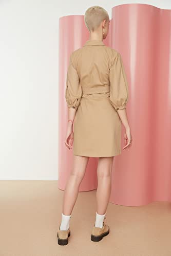 Trendyol Donna Giovane Regolare A-Line Risvolto Collare Tessuto Vestito, Cammello, 70