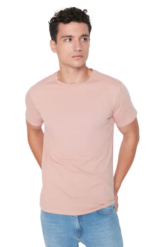 Trendyol T-Shirt Uomo Basic Slim Standard Girocollo Camicia, Rosa, M