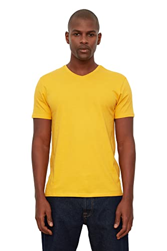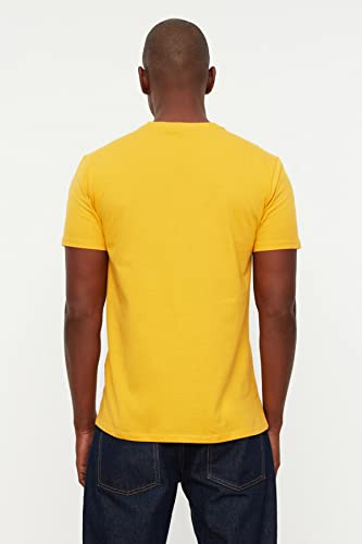 Trendyol T-Shirt Uomo Basic Slim Standard Girocollo Camicia, Senape, M