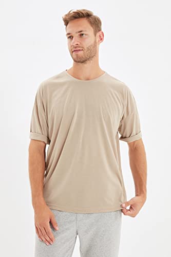 Trendyol T-Shirt Girocollo Standard Basic Oversize Uomo Camicia, Pietra, XL
